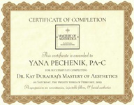 My Botox LA Med Spa and the office of Yana Pechenik, M.P.A., PA. Yana is a PA, and is thoroughly trained in all aspects of non-surgical cosmetic medicine & age-defying therapy. Staying at the forefront of the fast evolving aesthetic industry takes dedication, education and certification. Below are just some of certificates Yana has earned.