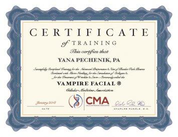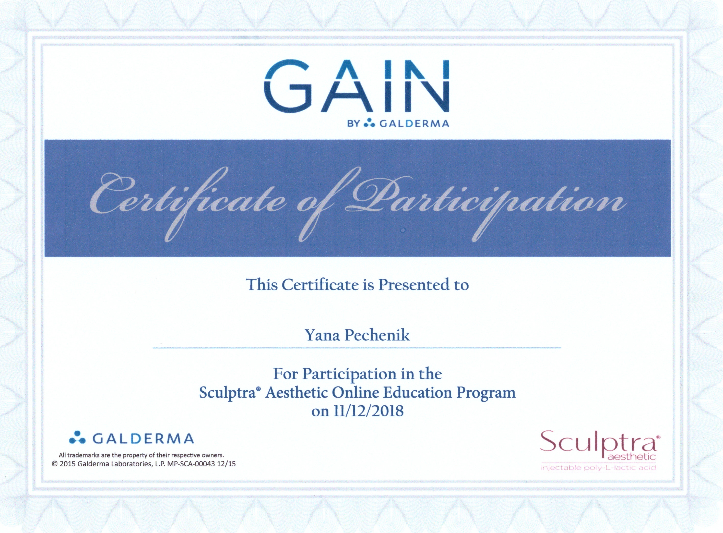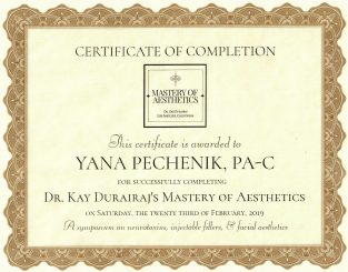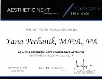 Staying at the forefront of the fast evolving aesthetic industry takes dedication, education and certification. This is why Yana Pechenik is constantly expanding her horizons and treatment possabilities by attending and learning various seminars courses and lectures.